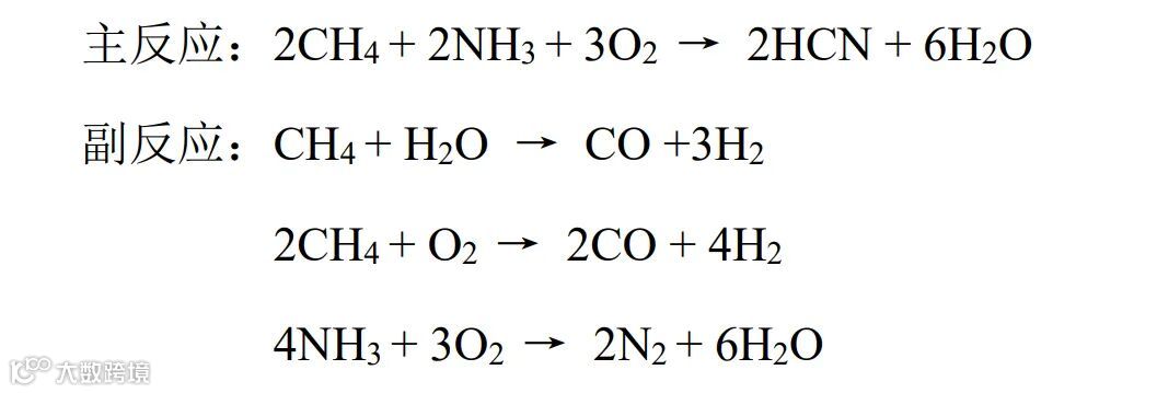对氢氰酸的合成,国外以安氏法占绝对优势,美国、日本完全采用安氏法合成氢氰酸。氢氰酸合成原理如下: