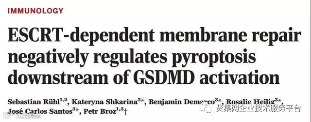 2019年1月Science在线发表了瑞士巴塞尔大学Petr Broz课题组题为ESCRT-dependent membrane repair negatively regulates pyroptosis downstream of GSDMD activation的研究。该研究发现:细胞内ESCRT系统(endosomal sorting complexes required for transport,转运必需内体分选复合物)在GSDMD引起焦亡过程中可发挥修复膜孔的作用,减少焦亡和IL-1β的释放。