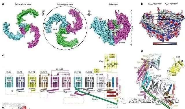 据悉,两个课题组研究人员利用分子生化、单颗粒冷冻电镜技术、电生理膜片钳等多学科研究手段,经过6年多努力,克服全长2822个氨基酸的鼠源Piezo2表达量极低的困难,获得了性质稳定均一的蛋白样品用于冷冻电镜数据采集,最终成功解析了Piezo2蛋白包含38次跨膜螺旋区的完整拓扑结构。