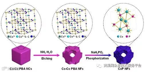 同济大学研究小组开发了一种CoP纳米框架(CoP NFs)合成的简便新方法。这种方法合成的CoP纳米框架具有沉淀,化学蚀刻和低温磷酸化步骤。
