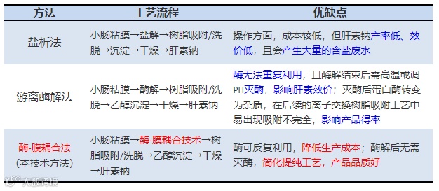 酶-膜耦合技术,酶可反复利用(反复使用5次,酶活性没有降低),无需高温灭酶,克服了游离酶法提取肝素的蛋白酶无法重复利用、蛋白酶灭活后转变为杂质影响产品得率等缺陷。此外,固定化酶技术能显著提高酶的稳定性。