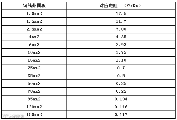 20℃时:17.5÷截面积(平方毫米)=每千米电阻值(Ω)