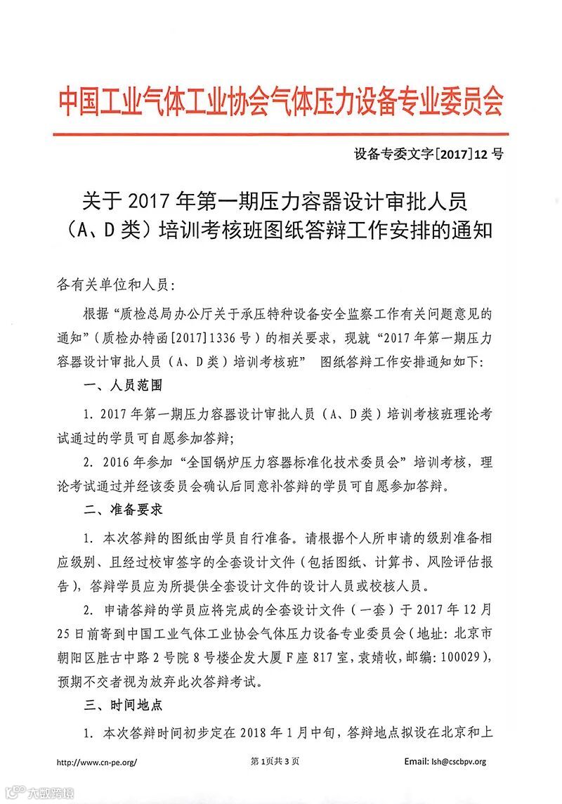 2017年压力容器设计审批人员培训考核班笔试部分已经过去几个月了,图纸答辩项的安排今天终于有了消息