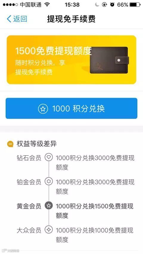 3、在蚂蚁积分内,积分可以兑换提现额度,根据蚂蚁会员等级不同而不同,额度好像是大众会员1000积分兑换1000元额度,黄金会员1000积分兑1500元额度。当然,如果没有积分,参考4。