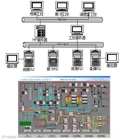 开发了某焦化厂集散控制系统。该系统承担备煤车间、炼焦车间、鼓冷车间、筛焦车间和调度室的自动控制与监测任务。系统主要由三台上位机,2个服务器,4个西门子PLC和2个大屏幕模拟屏组成,服务器与PLC之间通过Profibus网络连接,上位机与服务器通过工业以太网连接。双服务器冗余热备份可提高系统的可靠性,模拟屏用于显示相应车间工况,上位机监控软件使用WINCC组态开发,下位机软件使用STEP7编制。系统规模为:模拟输入69路,模拟输出23路,开关输入135路,开关输出34路。系统运行状况良好。