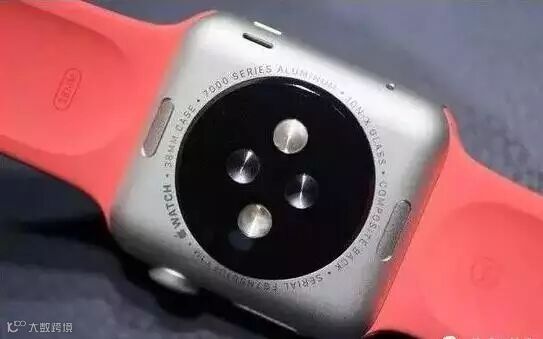 另一方面,在心率监测上,Apple Watch(包括 Gear Fit、Fitbit Surge、Microsoft Band 等手环)采用的是光电式心率计,它的原理非常简单——通过Apple Watch背面配备的绿色LED灯,搭配感光光电二极管照射血管一段时间,由于血液是红色的,它可以反射红光而吸收绿光,而在心脏跳动时,血液流量增多,绿光的吸收量会随之变大,处于心脏跳动的间隙时血流会减少,吸收的绿光也会随之降低,基于此,就可以根据血液的吸光度来测量心率。