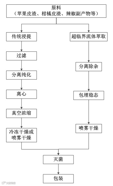 副产物的综合利用一直是我国果蔬加工业的产业难题,果蔬副产物中富含具有生理活性的植物化学物质,是功能性、保健食品的理想原料。该技术以苹果皮渣、柑橘皮渣、辣椒副产物等果蔬副产物为原料,集成层析色谱制备技术(树脂、硅胶、凝胶)、高效逆流色谱技术、膜分离技术、超临界流体萃取技术等提取分离与纯化手段,高效制备多酚、黄酮、多糖、皂甙、萜类、生物碱、有机硫化合物等天然提取物。并进一步利用化学衍生、乳剂包埋等技术,对天然提取物进行加工与改性,增强天然产物在不同体系中的应用效果,大幅提高目标产物的得率、生物活性、生物利用度及应用稳定性。