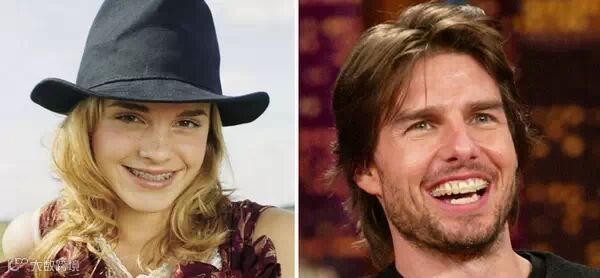 左图:正在接受正畸治疗的Emma Watson。右图:正在进行正畸治疗的Tom Cruise。