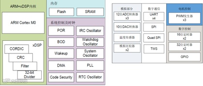 ●xDSP协处理器支持32位除法,CRC,Sin,Cos,Arctan和滤波运算