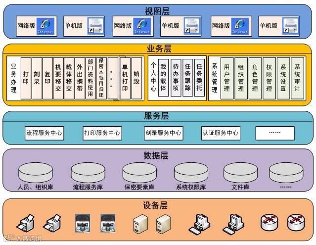 “打印刻录安全监控与审计系统”,旨在为国家保密安全单位、部门提供优质的服务和稳定易用、符合安全保密要求的业务系统,为保密业务开展保驾护航,充分发挥产品性能,把产品和技术优势转化为使用单位的业务优势,提升管理效能,落实国家对使用单位的保密要求。系统建设按照《武器装备科研生产单位保密资格标准》,参考《武器装备科研生产单位保密资格审查认证管理办法》,充分利用现有资源,坚持灵活高效、共享共用的原则,依托企业内部网络系统,以部门业务数据为基础,基于JavaEE技术架构,采用B/S模式,专注于流程管理和保密安全管理,以提升保密企业单位保密工作的科学性和规范性。