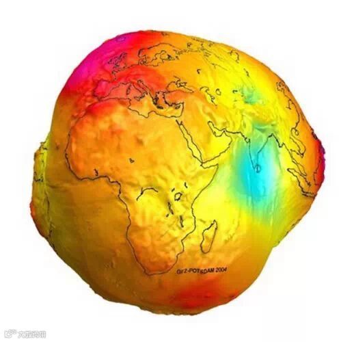真相:这张图来源于欧洲空间局,实际上表示的是全球重力的空间差异,而且是夸张了的,目的是让研究结果更直观。在你的想象中,仍然可以认为地球是两极略扁、赤道微突的椭球体。