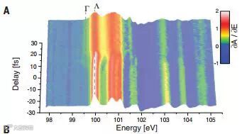 半导体中电子从价带到导带的转移是现代电子学的基础。而最近,科学家利用阿秒极紫外(XUV)光谱,可以实时观察硅中发生的此类电子动力学。通过周期量级脉冲注入导带中的电子改变了硅的XUV吸收谱,使之产生与激光电场振荡同步的陡阶跃。观察到的阶跃上升时间约为450阿秒,这为载流子诱导的带隙压缩与导带中电子-电子散射时间提供了上限。这一电子学过程与紧接着由晶格运动导致的带隙改变是分开的,后者的时间尺度为60 ± 10飞秒,这是最快的光学声子的特征时间。量子动力学模拟将载流子注入过程描述为光场诱导的电子隧穿。