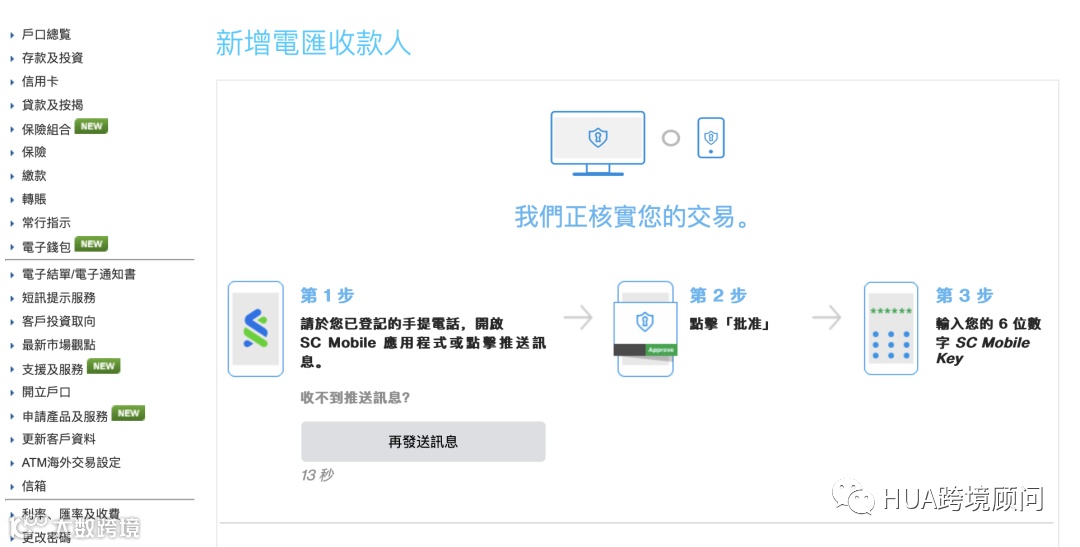 渣打会启动保安确认,您需要打开手机渣打银行进行认证。