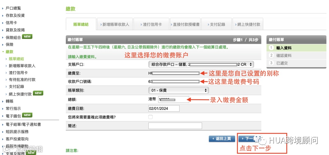 首先确认下缴费限额是否正常,通常新账户所有限额都是0 哦,您需要提前设置。
