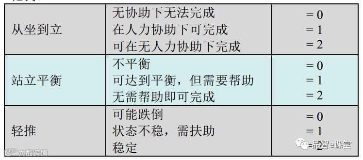 - 五分制(0 - 4)“0”指平衡机能最低