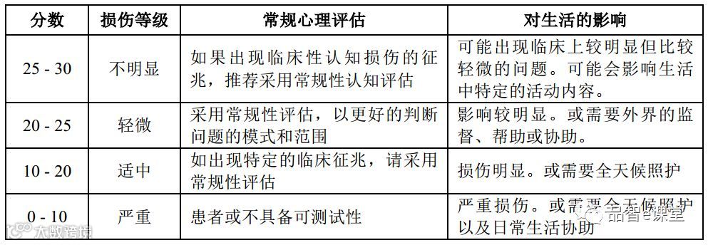 对包括注意力、计算能力、回想能力、语言能力、对简单命令和指引的服从能力等方面进行机能监测