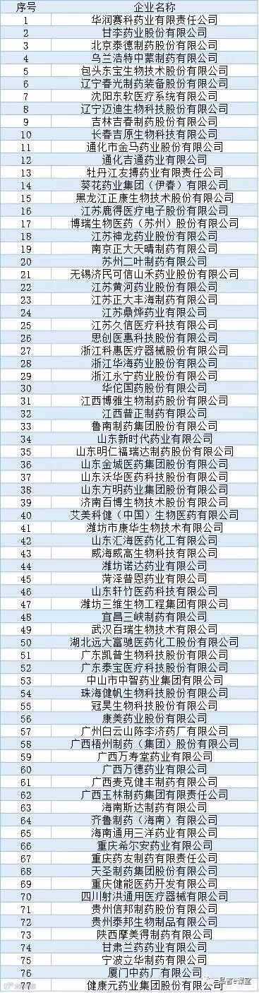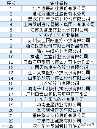 以下为上榜医药企业名单: