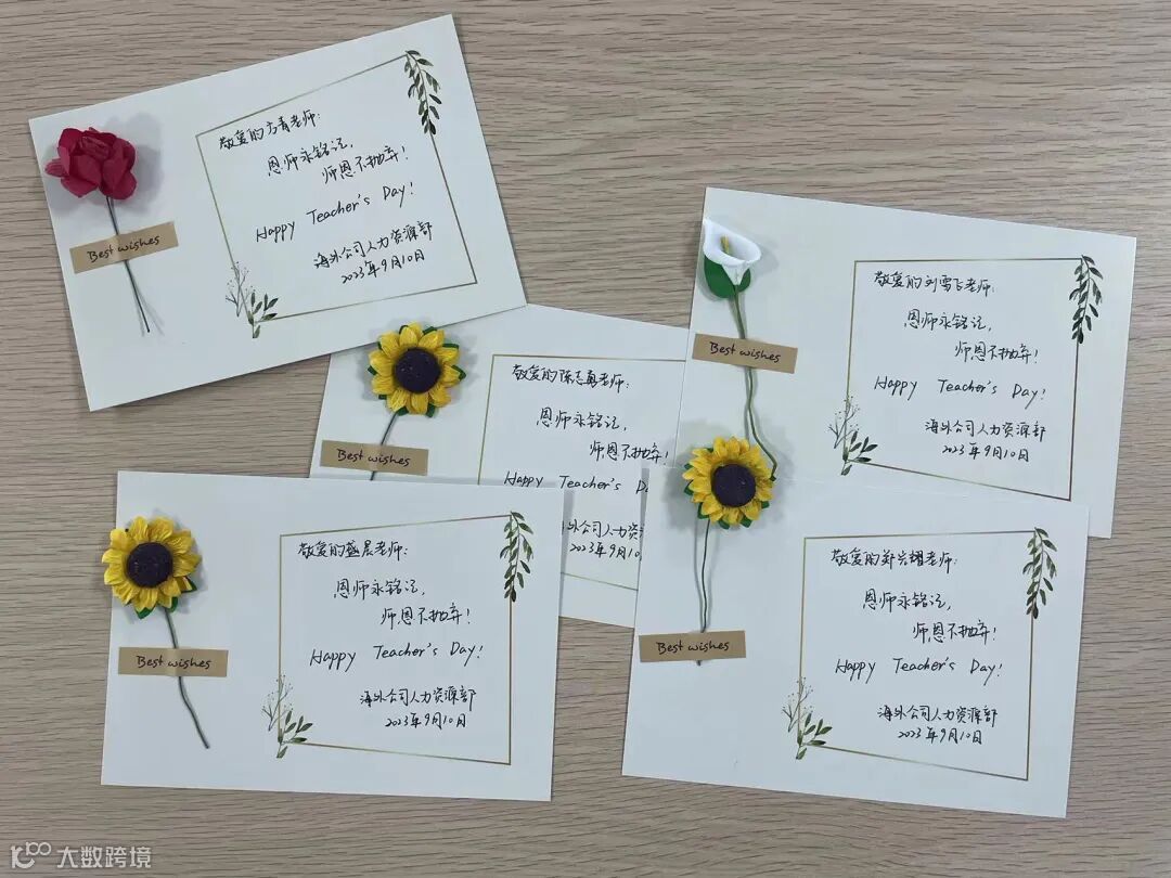 书香沁人心,好礼献恩师。人力资源部为海外公司的讲师们准备了手写的贺卡及鲜花、礼物,感谢讲师们对海外公司培训工作的支持,祝福讲师们节日快乐。