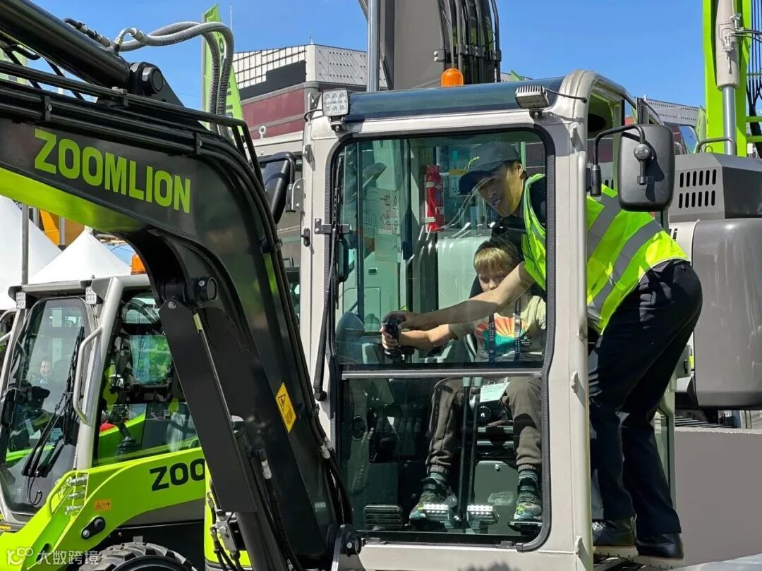 现场工作人员热情邀请观众进行人机互动体验,观众通过亲自上手体验,更加直观地感受到产品操控的精准、平稳以及优异等性能。除了需求客户外,从未操作过挖掘机的女性观众和小朋友在现场也跃跃欲试,在中联重科工程师的指导下,参与挖掘机投篮等趣味游戏,真实体现了中联重科挖掘机械产品简易上手、安全可靠的特点。