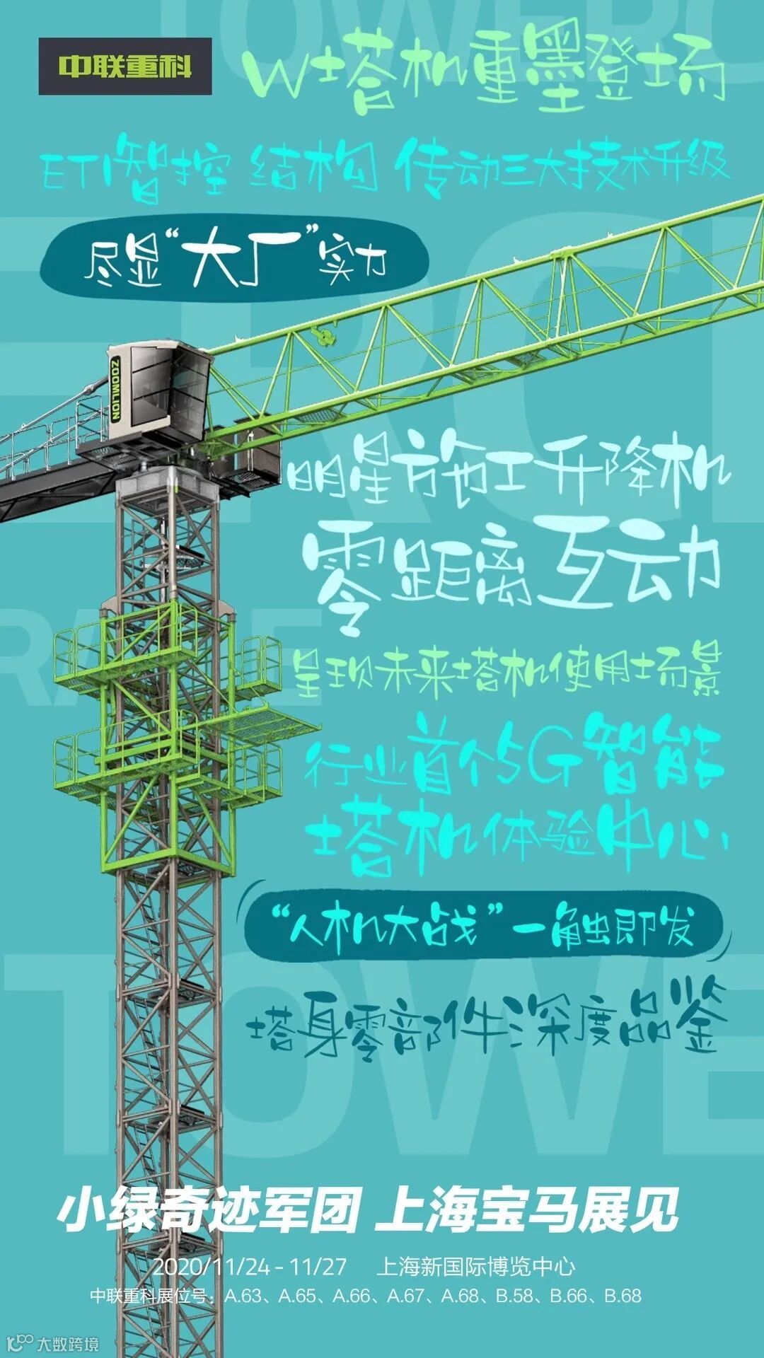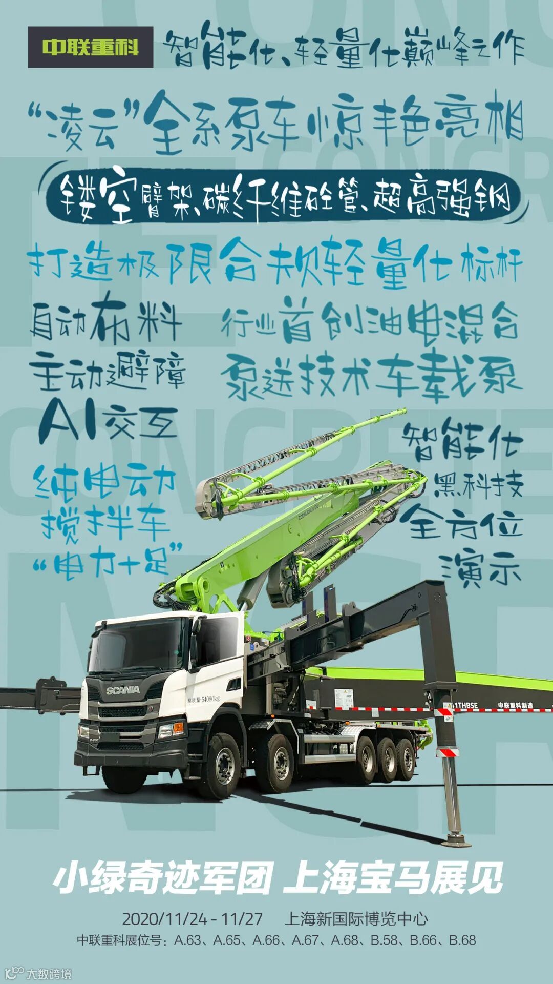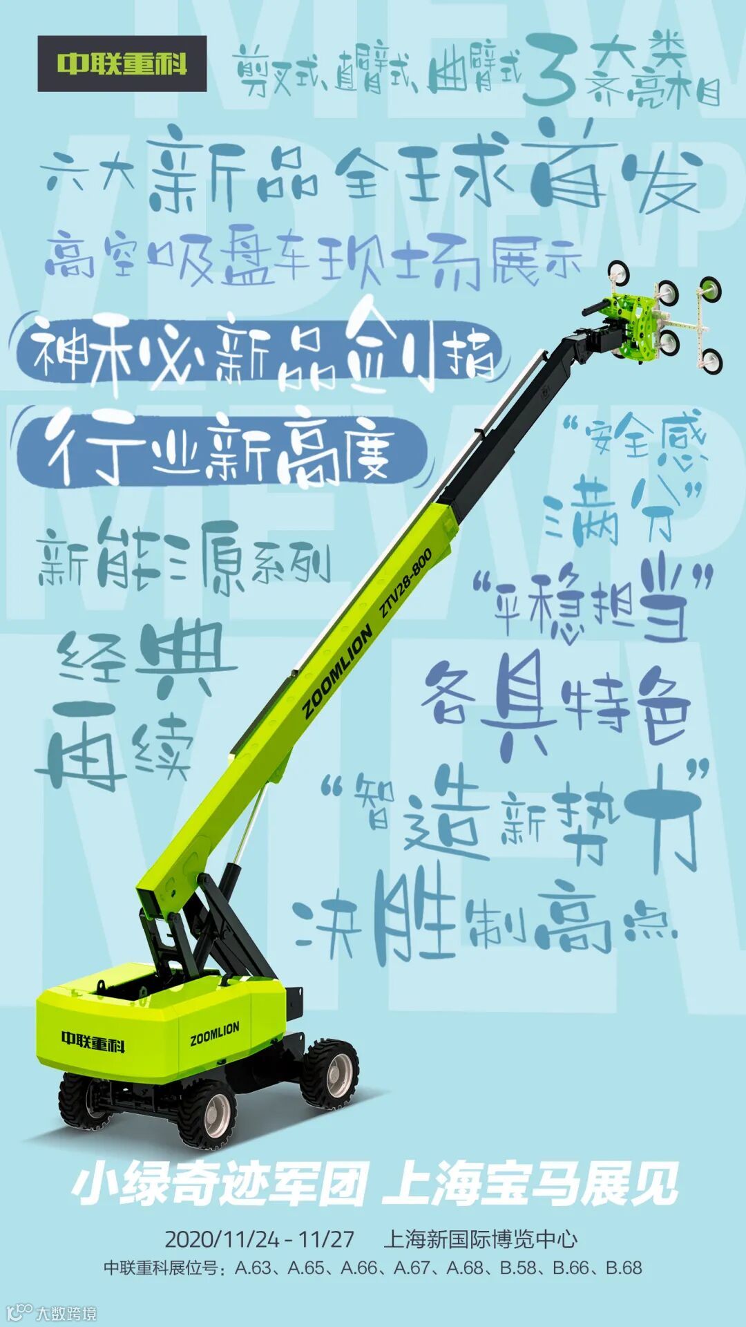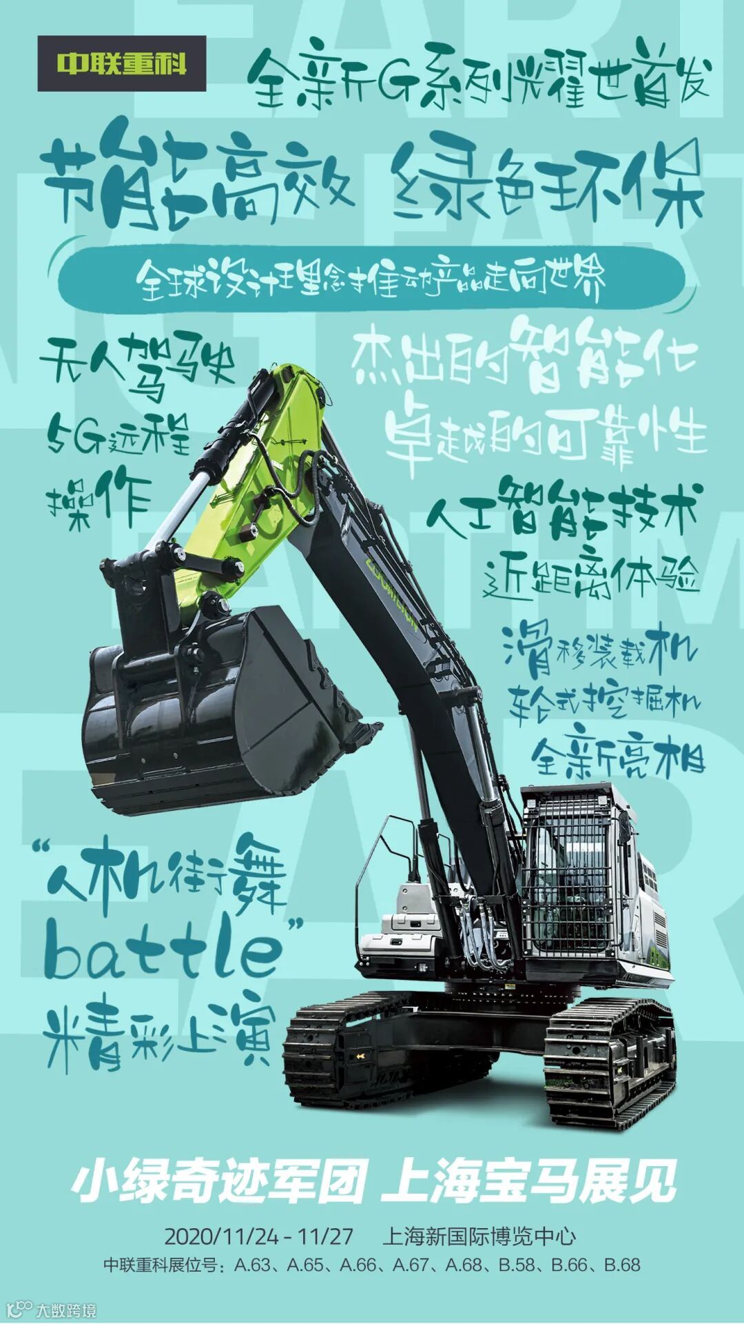 bauma CHINA 2020 上海新国际博览中心中联重科展台 小绿奇迹军团已全面就位,静候八方来客 在“云端”,中联重科全球直播也将同步开启 观看直播乐享“红包雨”、小绿军团产品模型、珍藏版神秘惊喜大礼! 中联重科宝马展VR展厅也即将上线 三维看展、图片直播、展会资讯、精彩视频一“网”打尽 点击进入展厅: 中联重科宝马展究竟有哪些智能产品? 一起通过九张“弹幕”海报,了解一下!