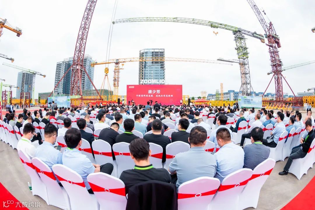 ▲中联重科塔机智能工厂二期开园暨全球最大风电动臂塔机交付仪式现场