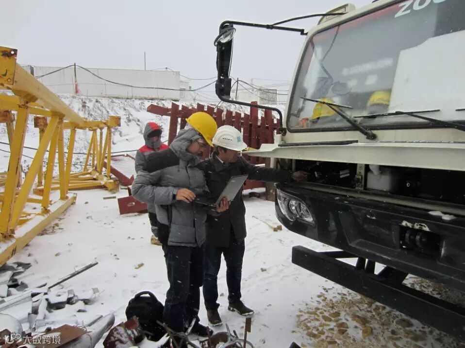 11月的哈萨克斯坦冰天雪地、寒风刺骨,此刻正是我们锻炼营销和服务能力的关键时刻,工起线中亚区域的将士们顶住严寒,和代理商、潍柴公司销售服务精英一起,逐个拜访全哈四个主要城市的标杆大客户,每拜访一名客户,我们会逐一进行保养、维修培训,特别关注冬天发动机保养、油品使用方面的培训。中亚工起线服务工程师吴昊,在手冻得拿不稳扳手的情况下,仍然对客户的所有吊车进行详细检查,仔细询问液压油是否更换,发动机启动、暖风机工作等是否正常。阿斯塔纳世博园工业区,距离2017年世博会开会只有一年半时间,现在正是建设的高峰期,即使是零下20多度,但世博园依然异常繁忙,各个厂家的吊车都在这里同场献技。有10台中联汽车吊车在世博园施工,其中四台QY80v配合四台中联大塔D1100-63正在对世博会主馆”鸟蛋”进行吊装作业,是目前世博园中唯一中国品牌中大吨位汽车起重机。世博园最大建筑承包商SML公司表示,中联QY80v性能非常稳定,吊装微动性好,投入使用近一年了,没有发生一起故障,表现的十分出色。