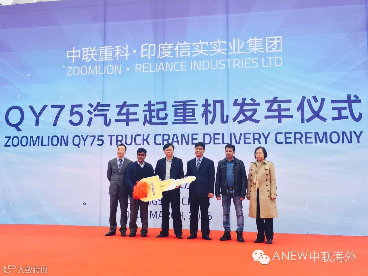 3月13日,印度Reliance集团采购中联重科的50台QY75V轮式起重机在中联重科泉塘工业园举行发车仪式,这批总价值近8000万元的产品是中联重科新年以来出口海外的最大订单。