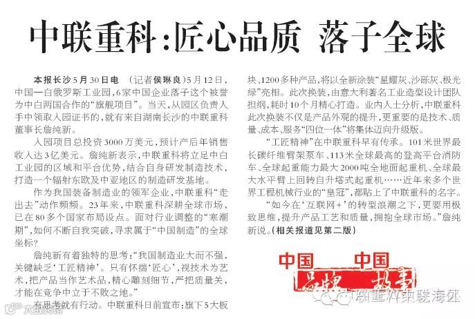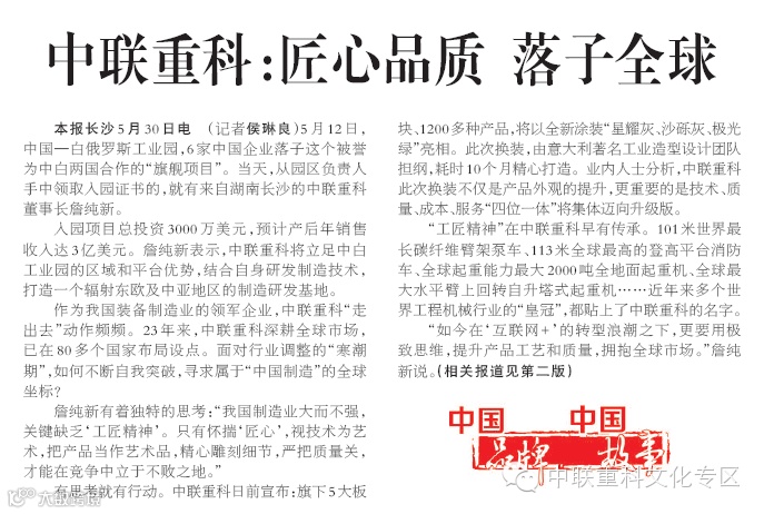 2《人民日报》中联重科:匠心品质 落子全球(中国品牌 中国故事)