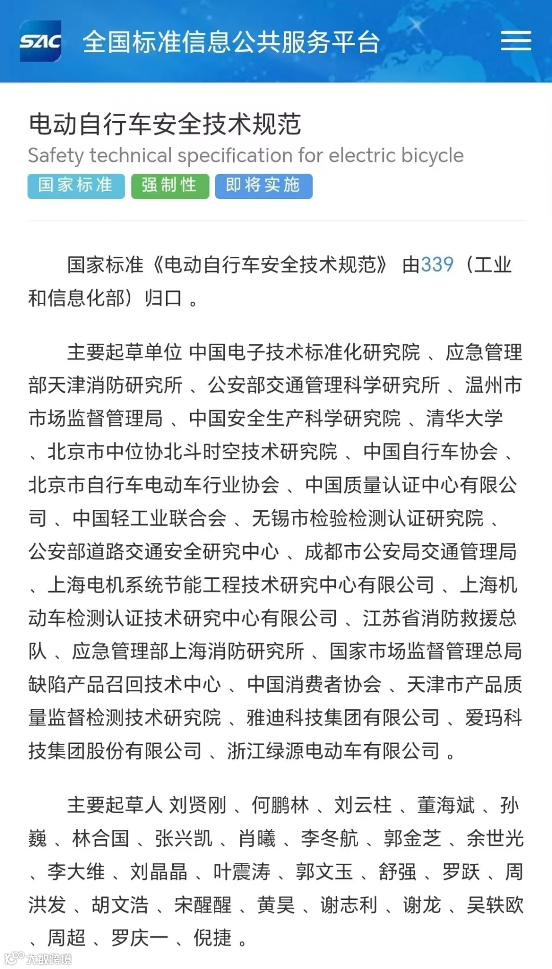 接下来,电子标准院将继续支撑工业和信息化部消费品工业司尽快组织开展电动自行车主要产地、主要企业宣贯会。