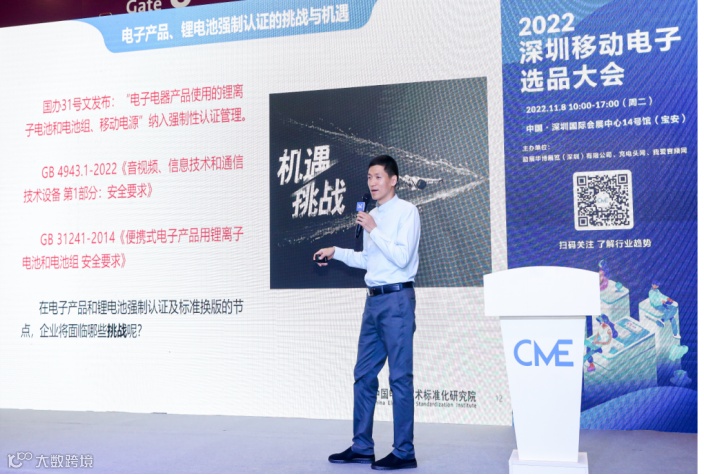 全国电子产品安全标准化技术委员会秘书刘云柱作了《电子产品、锂电池强制认证的挑战与机遇》报告。报告介绍了2022年9月23日,中国政府网发布的《国务院办公厅关于深化电子电器行业管理制度改革的意见(国办发〔2022〕31号)》简称“国办31号文”。该意见明确将“电子电器产品使用的锂离子电池和电池组、移动电源”纳入强制性认证管理。同时GB 4943.1已于今年7月份发布最新版,GB 31241最新版本即将发布。电子产品和锂电池强标的更新,给电子产品、移动电源、锂电池等企业带来很大的挑战与机遇。