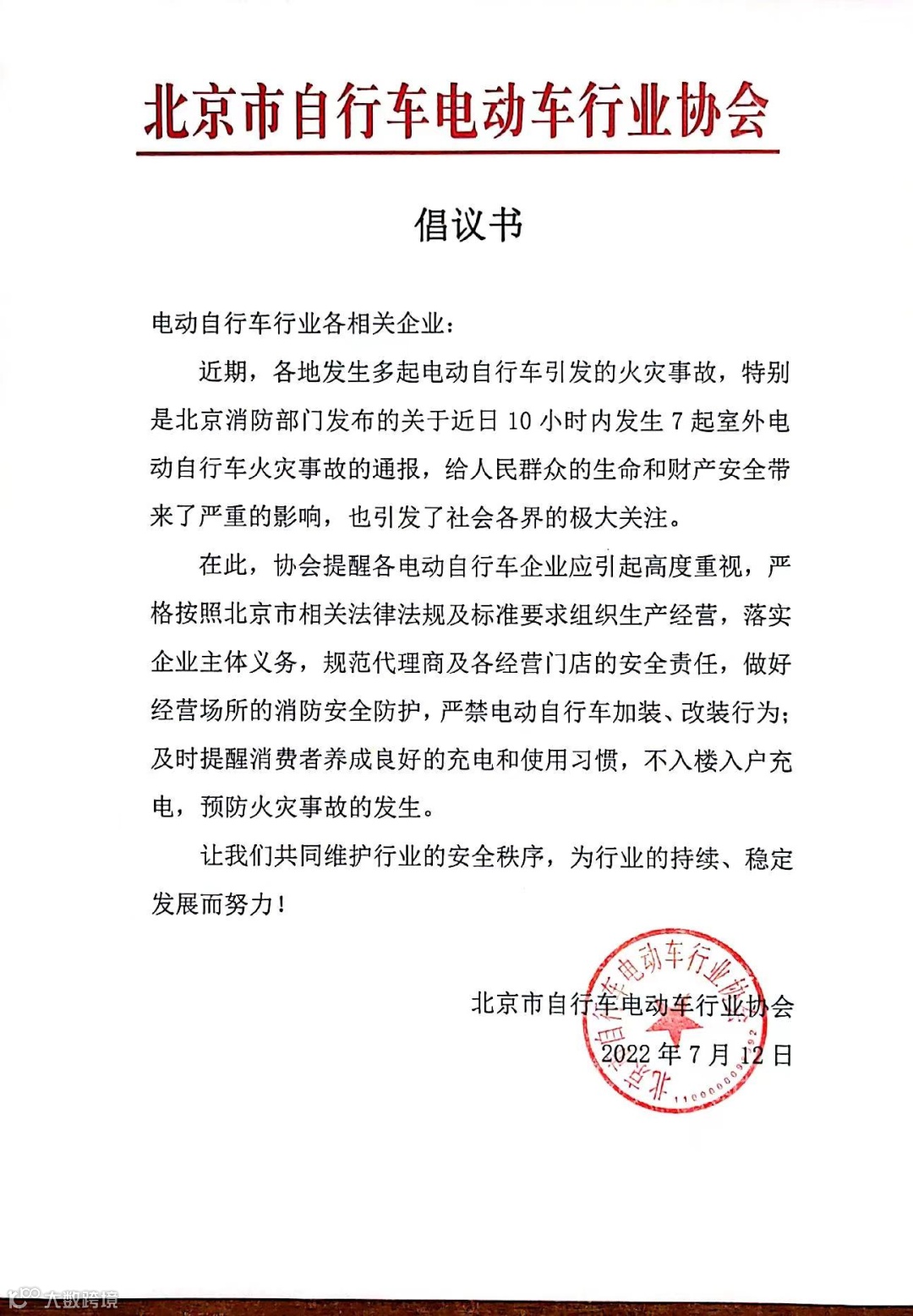 导读:北京市自行车电动车行业协会致电动自行车行业同仁倡议书