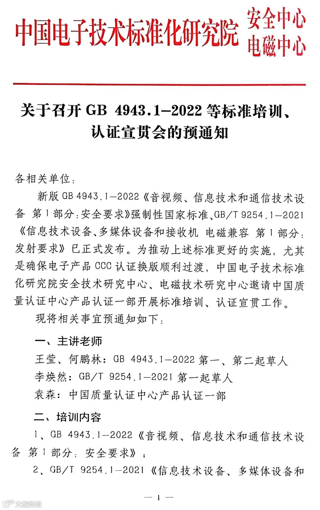 导读:新版GB 4943.1-2022培训宣贯会