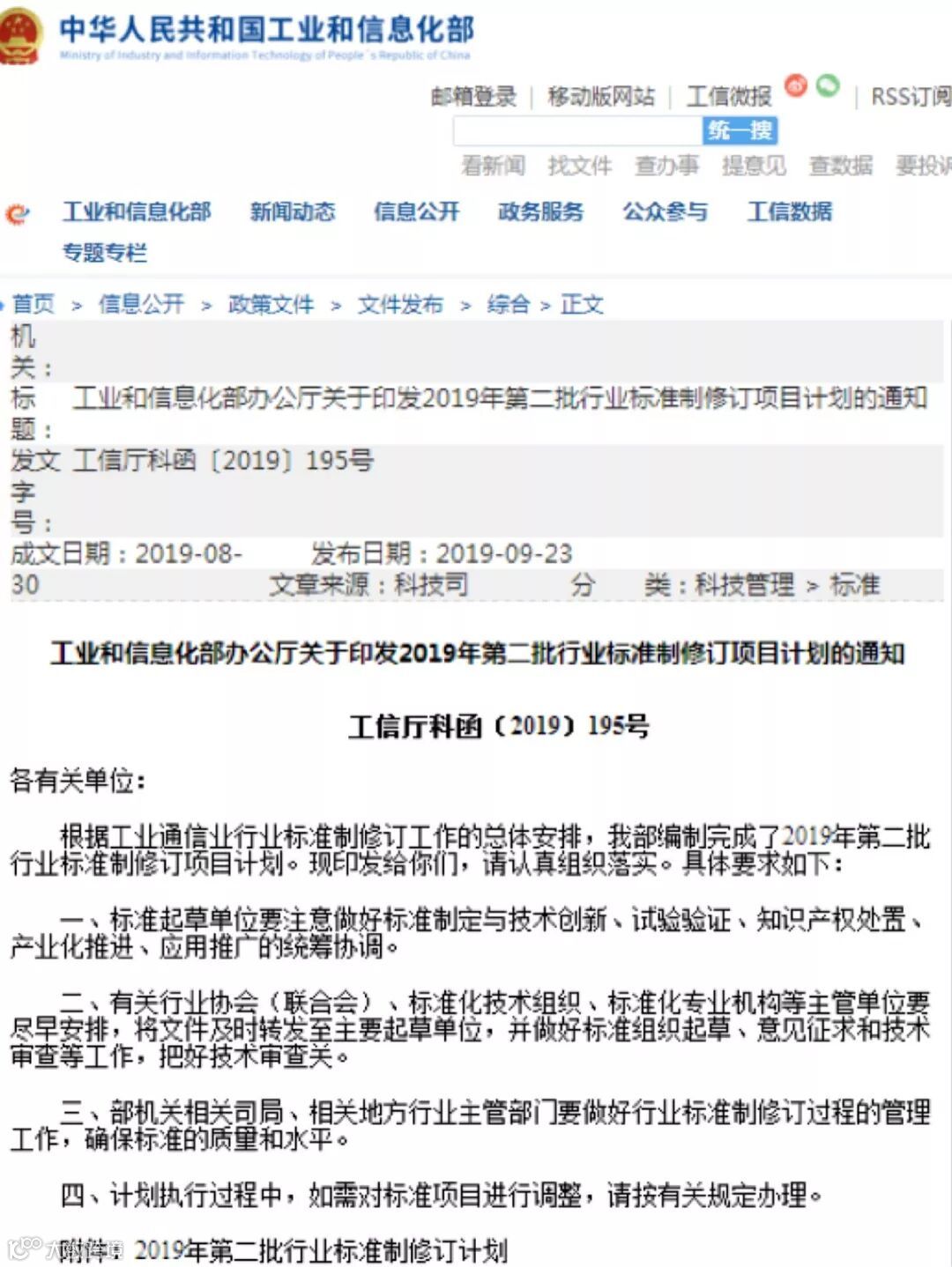 根据工业和信息化部办公厅于2019年9月23日印发的《工业和信息化部办公厅关于印发2019年第二批行业标准制修订项目计划的通知》(工信厅科函〔2019〕195号),由
