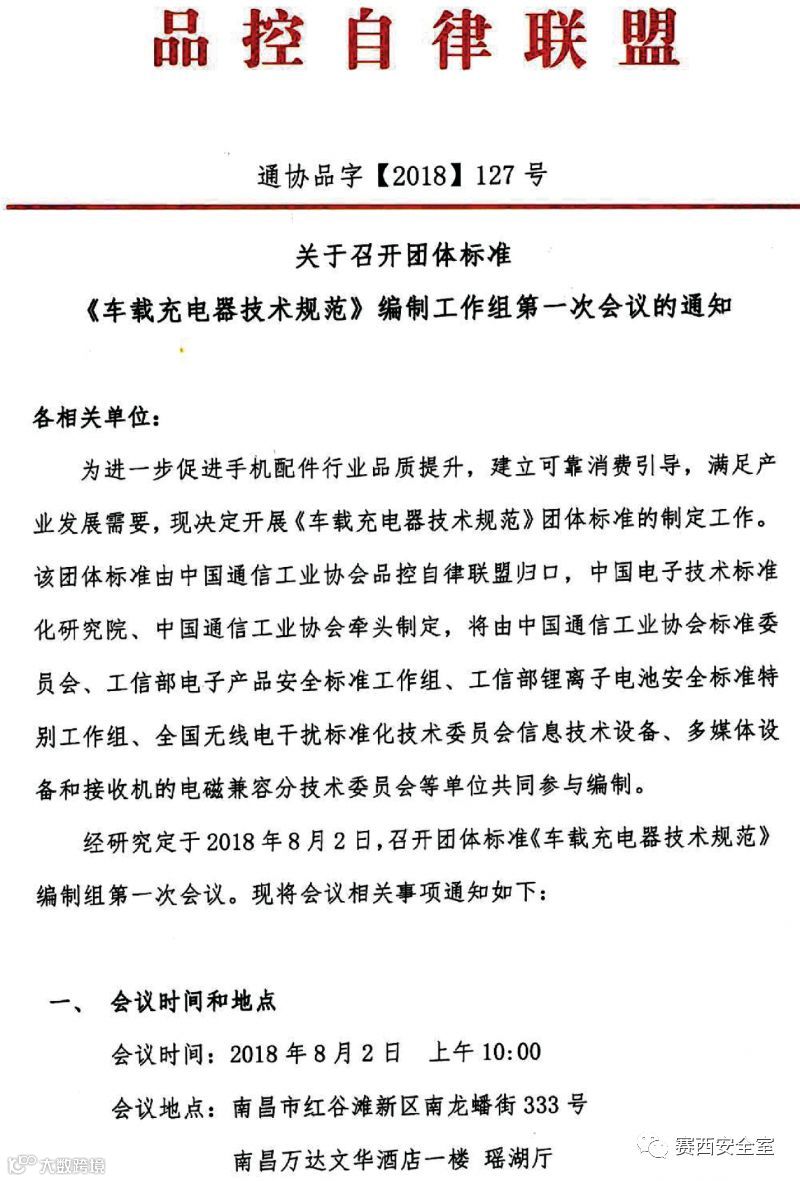 《车载充电器技术规范》团体标准编制工作组联系方式: