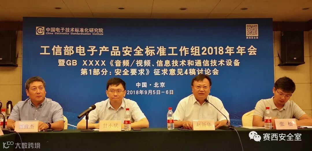 2018年9月5日,工业和信息化部电子产品安全标准工作组(以下简称“工作组”)2018年年会暨GB XXXX 《音视频、信息技术和通信技术设备 第1部分:安全要求》征求意见4稿讨论会在京隆重召开。本次会议会期两天,来自企业、行业协会、检测机构、标准化组织的70余家单位的110余名代表出席了本次年会。中国电子技术标准化研究院(赛西,CESI)作为工作组秘书处单位组织了此次会议。