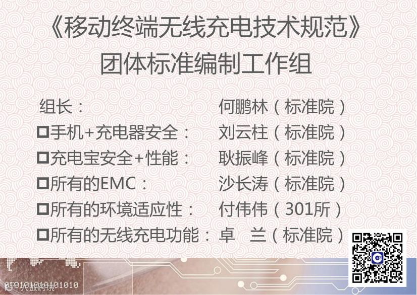 《移动终端无线充电技术规范》团体标准编制组联系方式: