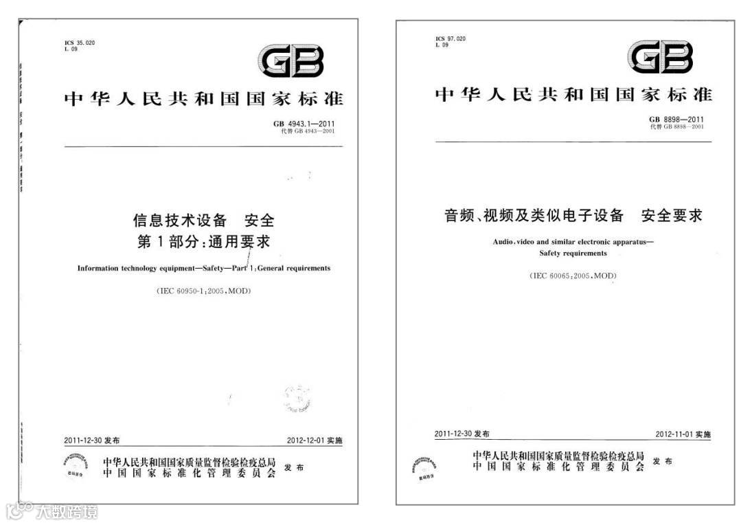 以上标准中有两项为中国强制认证(CCC)的技术依据,它们分别是GB 4943.1-2011《信息技术设备 安全 第1部分:通用要求》和GB 8898-2011《音频、视频及类似电子设备 安全要求》。这两项标准是电子产品安全领域的标准,关系到消费者的人身、财产安全,是我国进行信息技术设备、音视频及类似电子设备安全中国强制认证(CCC)主要技术依据,用于国家质检总局、各地质监局、国家工商总局、各地工商局、市场监督局等开展监督抽查和市场监管等。