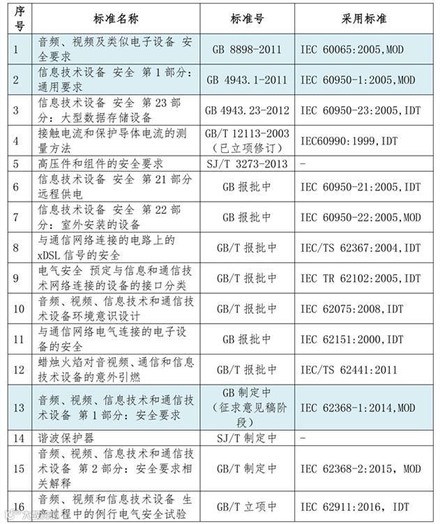 同时,安全工作组还负责GB 4943.23-2012《信息技术设备 安全 第23部分:大型数据存储设备》、《与通信网络电气连接的电子设备的安全》等多个国家强制性标准、推荐性标准、行业标准的起草和维护,这些标准共同构成了电子产品安全标准体系。