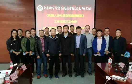 2018年11月2日,由国家机器人标准化总体组归口管理,沈阳新松机器人自动化股份有限公司(新松)牵头起草的机器人安全领域顶层标准《机器人安全总则和指导规范》第三次讨论会在中国科学院重庆绿色智能技术研究院举行,会议由重庆鲁班机器人承办。中国电子技术标准化研究院(赛西,CESI)、沈阳新松、中科院重庆研究院、哈工大机器人、深圳优必选、北京康力优蓝、科大讯飞、苏州苏相等单位参会。工信部电子产品安全标准工作组秘书、赛西安全室工程师刘云柱参加了此次会议。