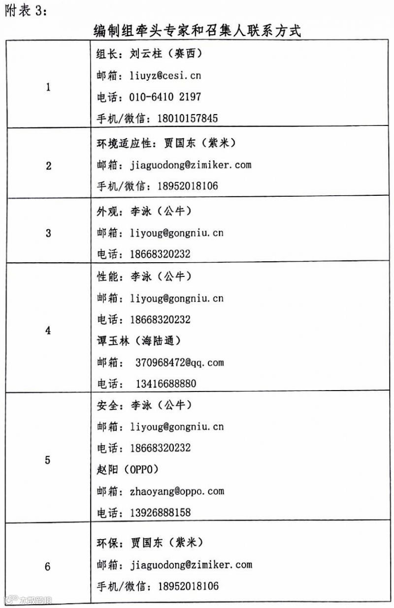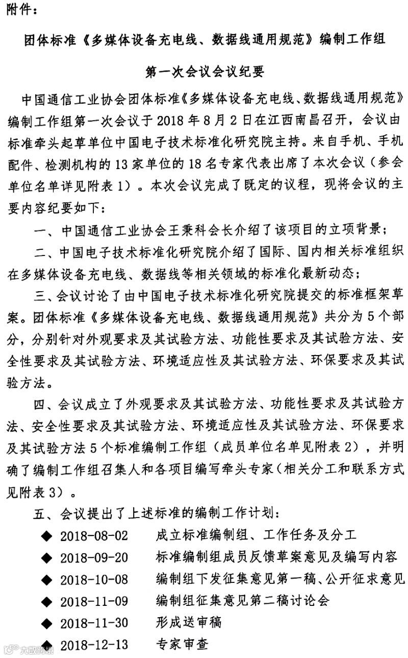 《多媒体设备充电线、数据线通用规范》团体标准编制工作组联系方式: