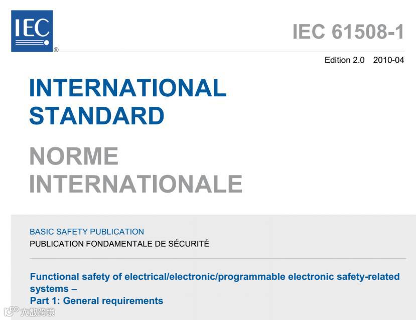 可能一部分读者对于功能安全还不是很了解,这里简单介绍一下,目前对于功能安全评估公认的是国际电工委员会的IEC 61508《电气/电子/可编程电子安全相关系统的功能安全》。该标准一共7个部分,详细规定了功能安全的相关术语、具体要求、分类(SIL:Safety Integrity Level)和做法,对设备的整个生命周期提出了一整套安全要求,不但包含了从设备的安全需求规范(Safety Requirement Specification)开始到产品验证(Product Validation)的开发全过程,还包括了过程中的所有相关的功能安全管理及文档规范。并进一步从过程中及具体的实现方法上给出了明确的规定和指导。