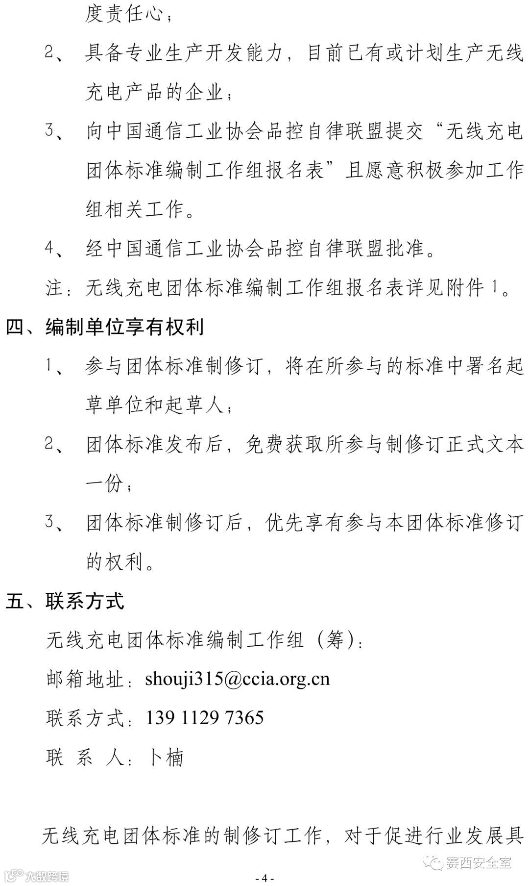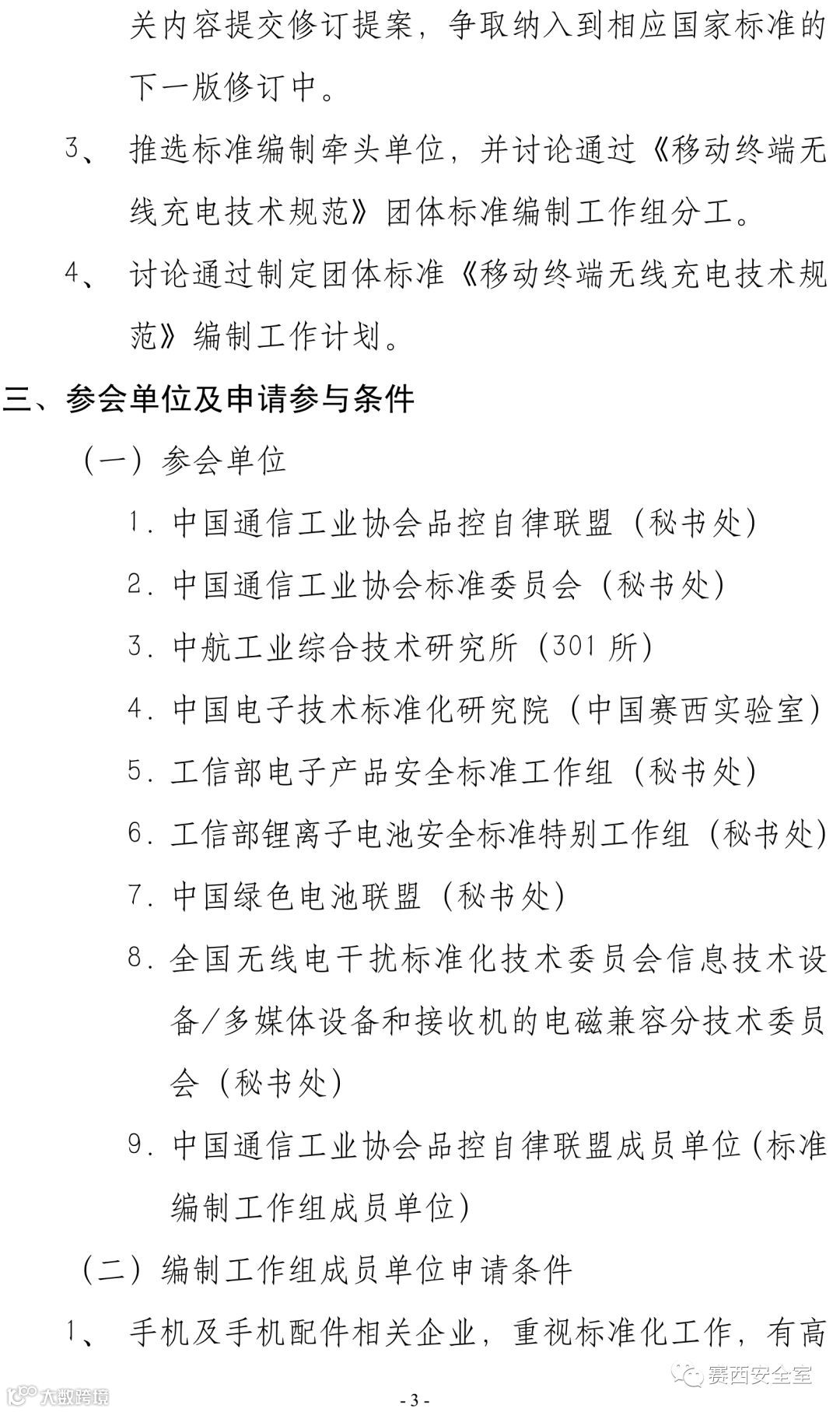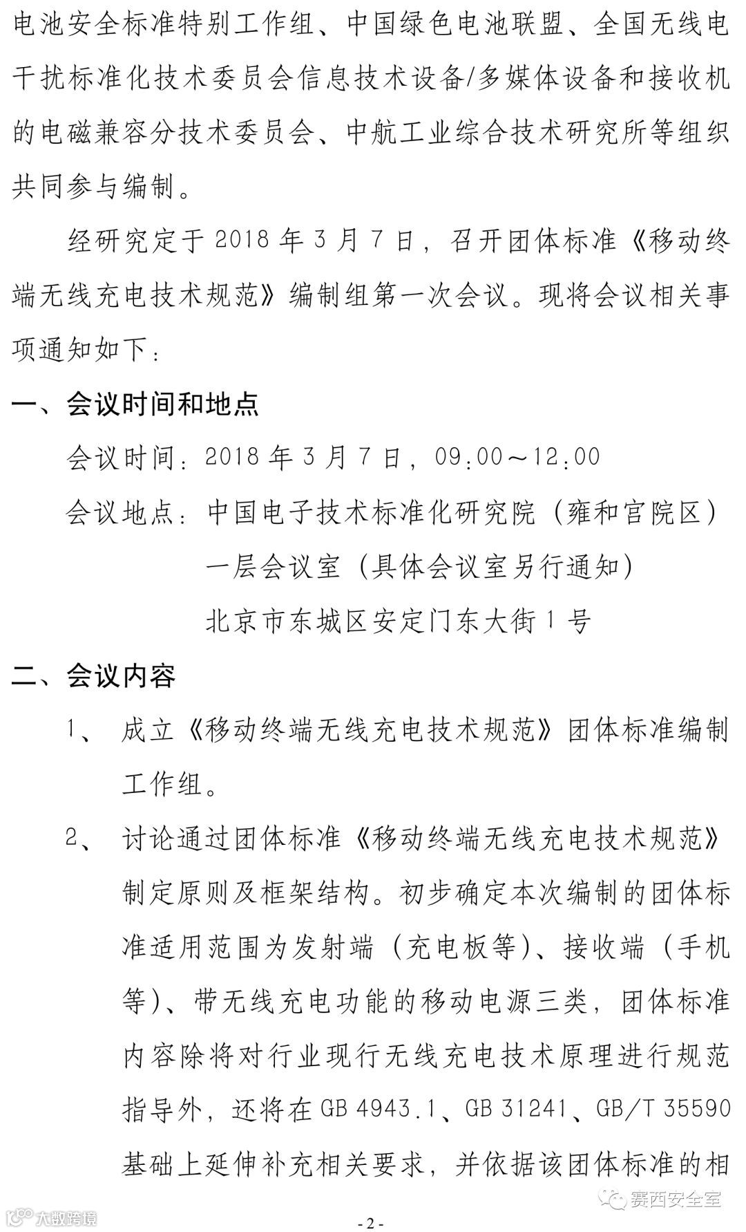导读:关于召开团体标准《移动终端无线充电技术规范》编制工作组第一次会议的通知。