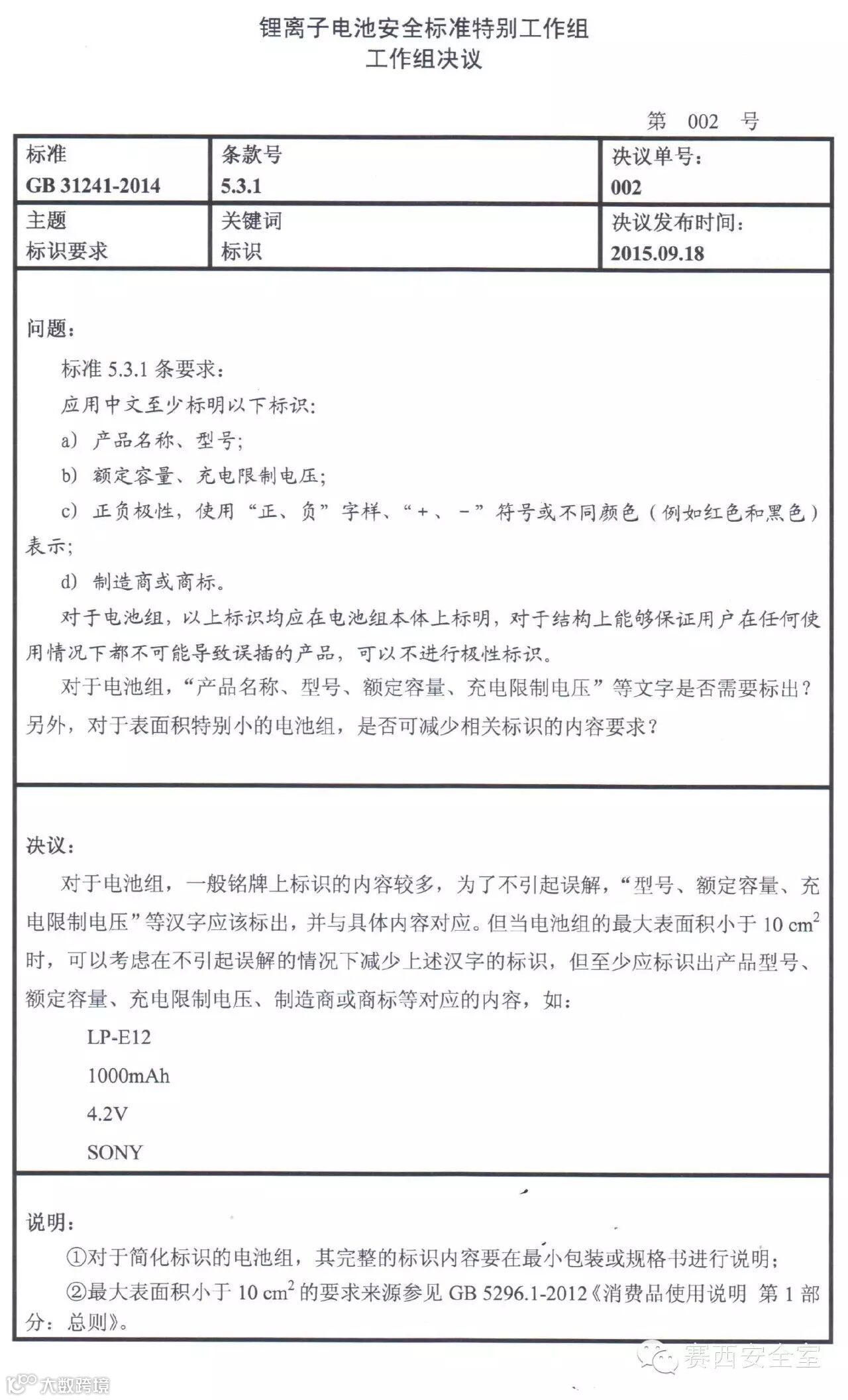 第002号决议:GB 31241-2014第5.3.1条“标识要求”