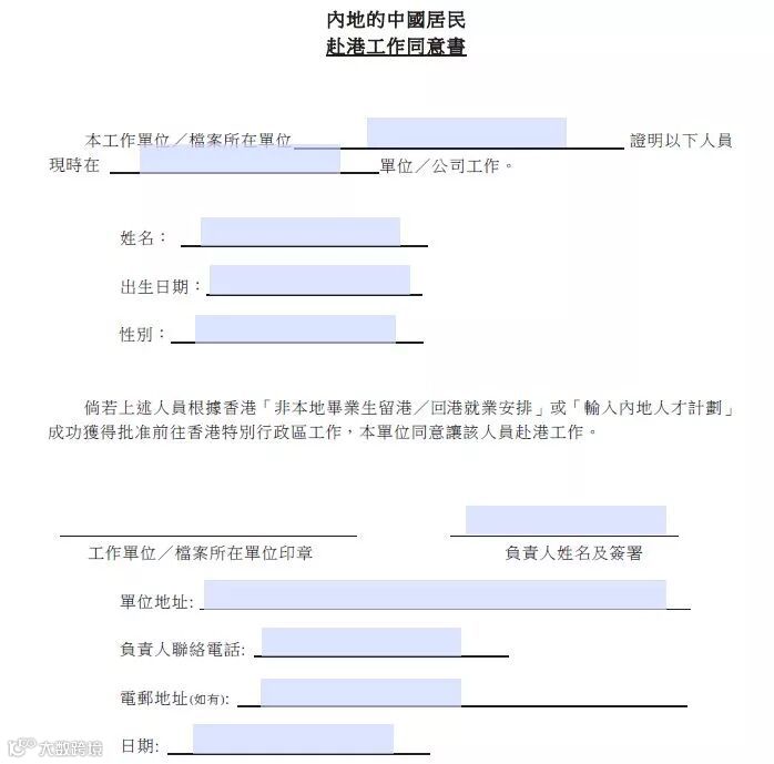 6、ID990A表格(可以在入境事務處官方網站下載,其中第8頁的“內地居民赴港工作同意書”需要寄回檔案所在單位,或者檔案保管單位蓋章)