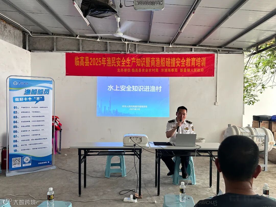 5月30日,洋浦海事局联合临高县农业农村局和新盈镇人民政府在临高县商渔船安全教育中心开展水上安全知识进渔村活动,现场讲授水上安全生产和商渔船防碰撞知识,共有100余名海上渔业从业人员参加。