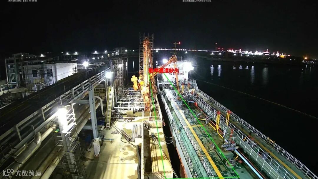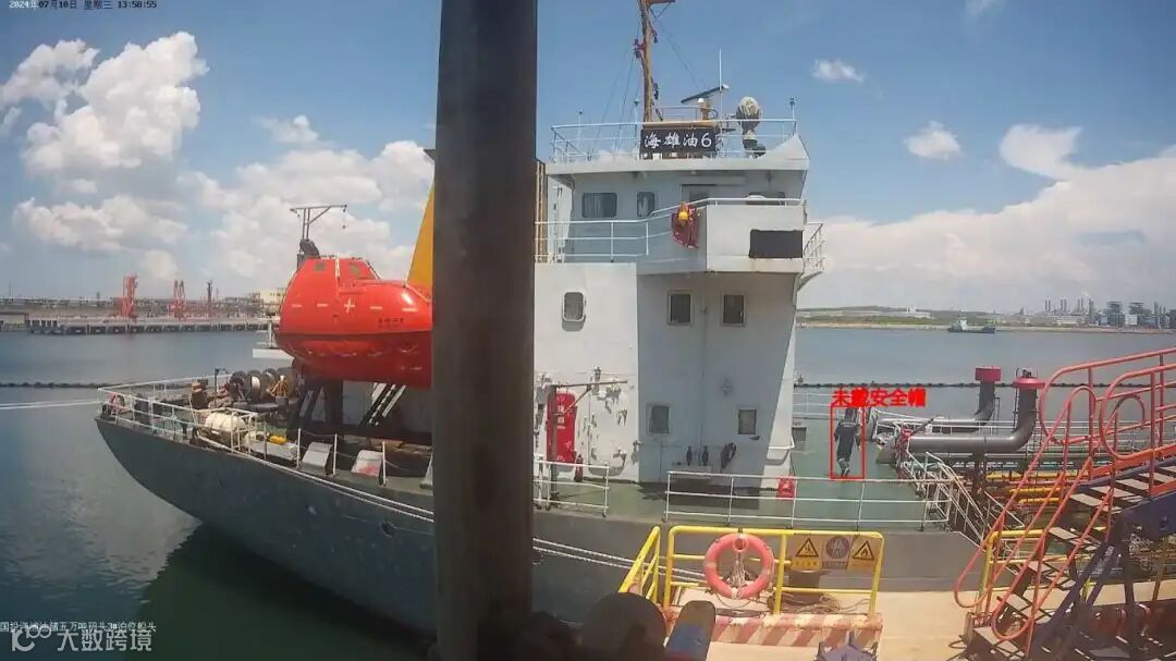 该试点项目由多源感知端、数据传输网络、AI处理设备以及船岸预警监控界面等组成,在5万吨级液货船泊位上设置了包括热成像相机、全景相机在内的12套监控设备,基本实现船岸界面的无死角覆盖。