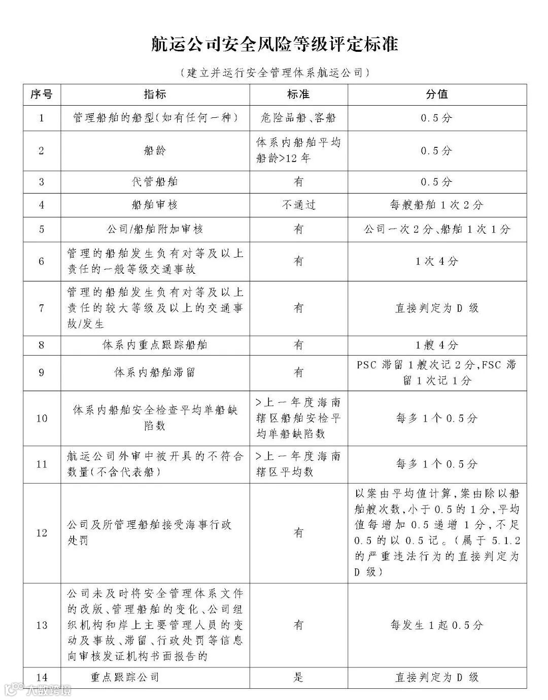 请中、高风险等级航运公司对照《航运公司安全风险等级评定标准》,继续加油,争先创优!