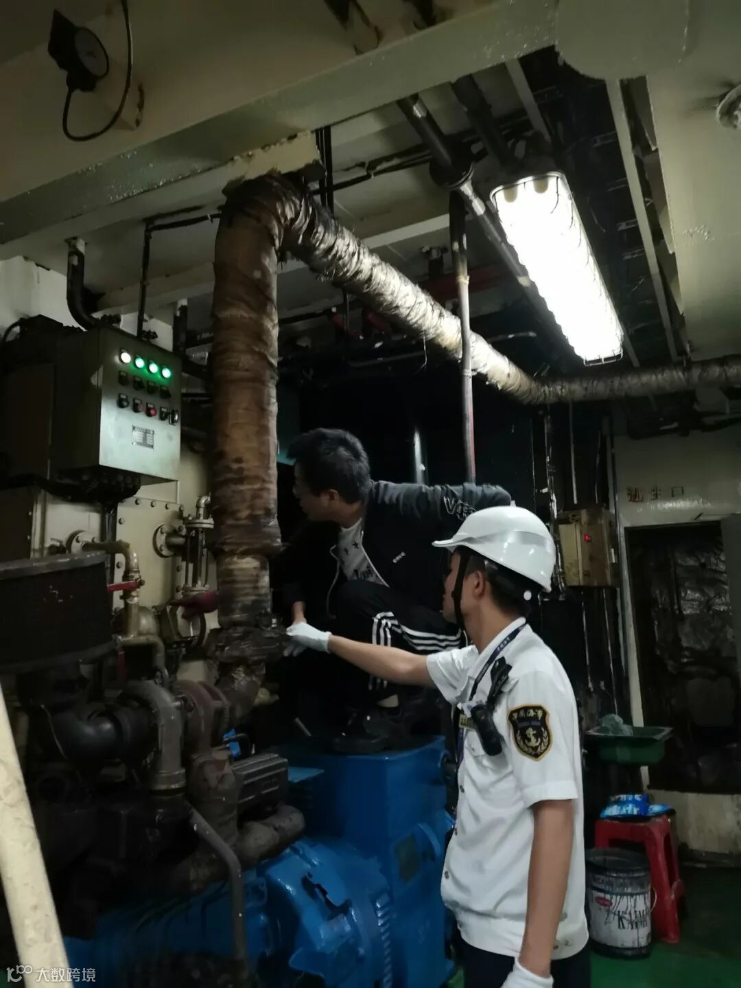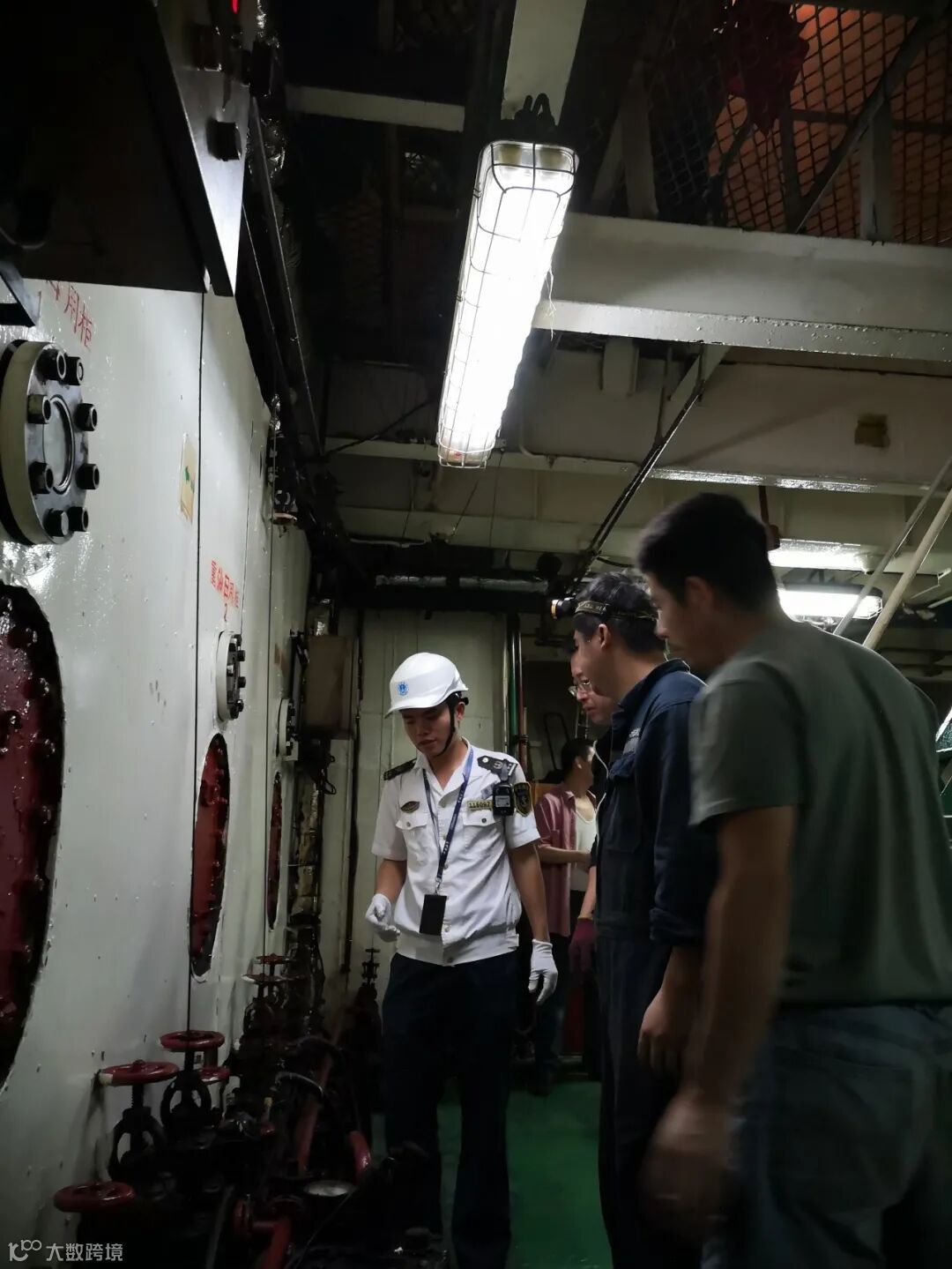 行动中,执法人员一方面检查人的不安全行为,主要包括夜间值班人员的在岗情况和人员适任能力;另一方面是检查物的不安全状态,包括船舶救生消防设备和防污染设备。