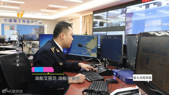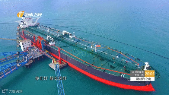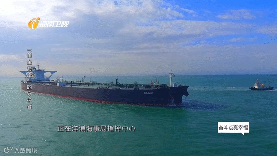 这艘载重30万吨的原油船舶艾丽莎号,来自利比里亚,正在洋浦海事局指挥中心工作人员的指挥下缓缓进港。