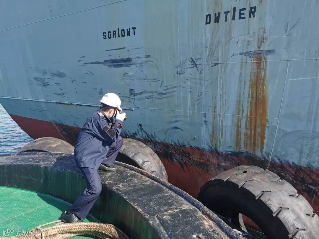洋浦海事局通过该轮代理联系船舶,一方面要求其及时准备船舶和船员证书、航海日志、轮机日志等文书资料。另一方面兵分两路,一组人员针对船舶疑似碰撞部位,开展现场勘查工作,查找碰撞痕迹;一组人员利用远程视频,对事故相关船员进行问询,执法记录仪全程记录,制作询问笔录。
